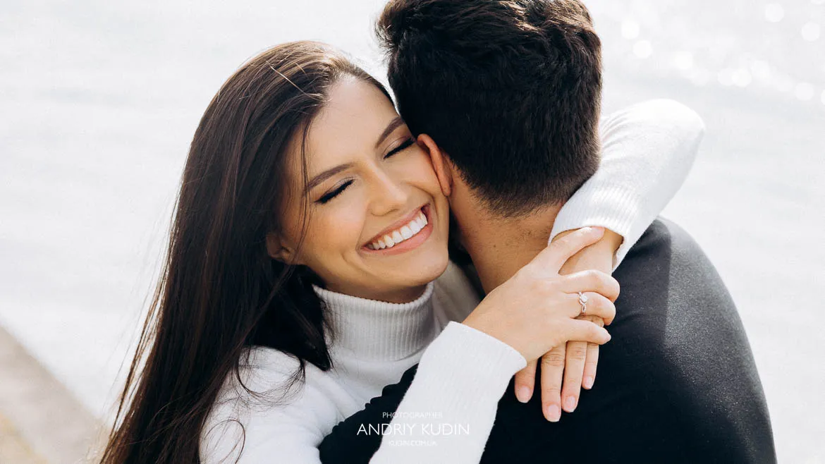 Love-filled hug following a beautiful proposal in Luzern Tender embrace of engaged couple after surprise proposal in Luzern